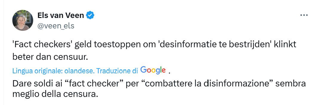 L’articolo poi mostra la sua vera natura citando la dottoressa Els van Veen, medico di famiglia olandese, da sempre critico sulla gestione pandemica, e che ha cavalcato ogni possibile disinformazione durante gli anni della pandemia. Le parole di van Veen non sono una bufala, le ha dette veramente, il problema non è quanto dice, ma il fatto che si senta la necessità di riportarlo. Van Veen non ha titoli per parlare di virologia e pandemia, è un medico sì, come tanti, rappresenta una nicchia dei medici olandesi, in realtà rappresenta ufficialmente solo se stessa, perché dare risalto alla sua voce e non alla moltitudine che la pensa all’opposto?
