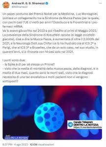 Un paper postumo del Premio Nobel per la Medicina, Luc Montagnier, ipotizza un collegamento tra la Sindrome da Mucca Pazza (per la quale, con pochi casi l’UE ci vietò per anni l’Ossobuco e la Fiorentina) e i pro-farmaci mRNA.