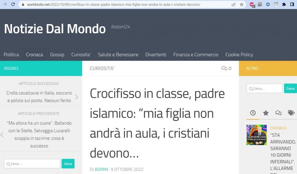 Padre musulmano si scaglia contro il crocifisso ecc ecc. Siti di notizie false come questi non si vedevano da un po'!