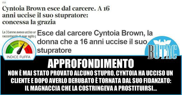 Su molte testate in questi giorni si è dato risalto alla storia di Cyntoia Brown. Il Corriere ha titolato: