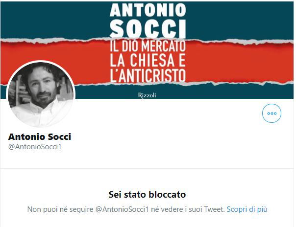 Sei stato bloccato. Non puoi né seguire @AntonioSocci1 né vedere i suoi Tweet.