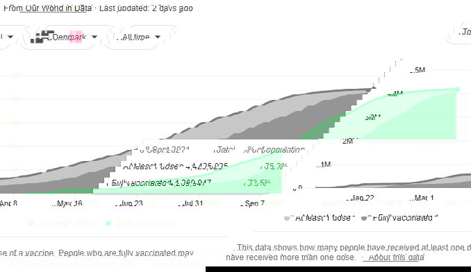 Situazione in Danimarca, il 73,5% della popolazione è vaccinato con doppia dose.