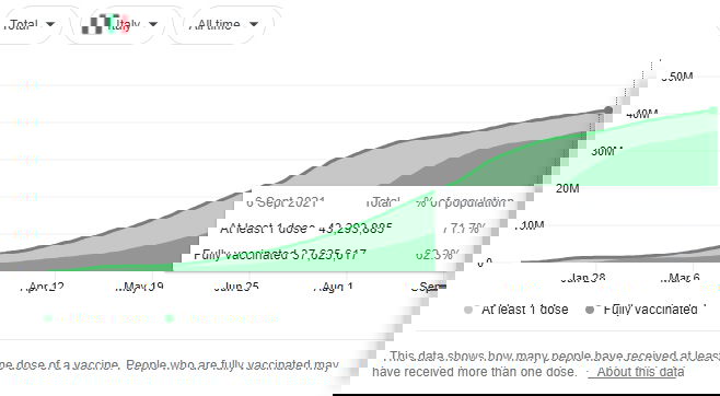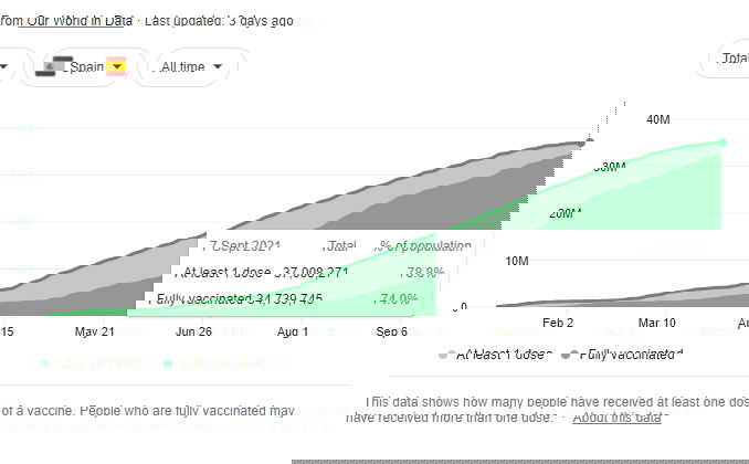 Prima che arrivi l’ennesimo disinformatore seriale a commentare con un “e allora la Spagna, anche da loro ci sono sempre meno restrizioni”, beh anche in Spagna il numero di vaccinati con dose piena è, per ora, nettamente superiore all’Italia: