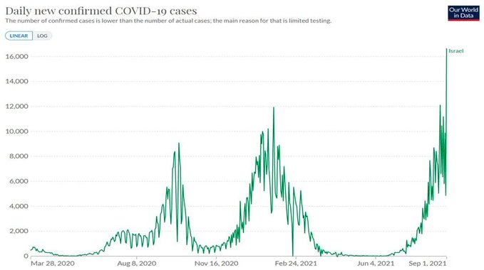 Grafico molto interessante, ma chiunque ne capisca di questo tipo di analisi potrebbe confermare che non serve a nulla. Non è sulla base di un grafico come questo che è possibile capire l’efficacia o meno dei vaccini. Visione TV, dove scrive anche la nostra vecchia conoscenza Enrica Perucchietti, quella che sostiene di combattere le vere fake news, sta menando il can per l’aia: cita Worldometer Haaretz, ma evita attentamente di linkare il governo israeliano e la sua pagina dedicata alla pandemia e ai dati, pagina che viene aggiornata tre volte al giorno. Chissà come mai non ce la fanno vedere e preferiscono altre fonti. Ve lo mostriamo noi, come mai: