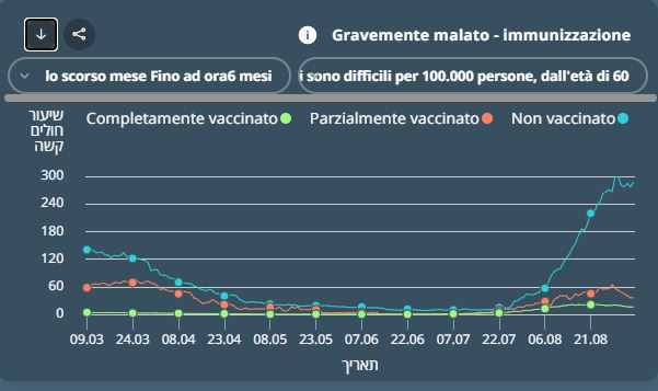 Peccato che non sia vero. Sicuri non sono per niente, efficaci ancor meno, e i dati che arrivano da Israele -a tutti tranne che a Speranza- lo confermano. Questo il grafico dei contagi al 1 settembre