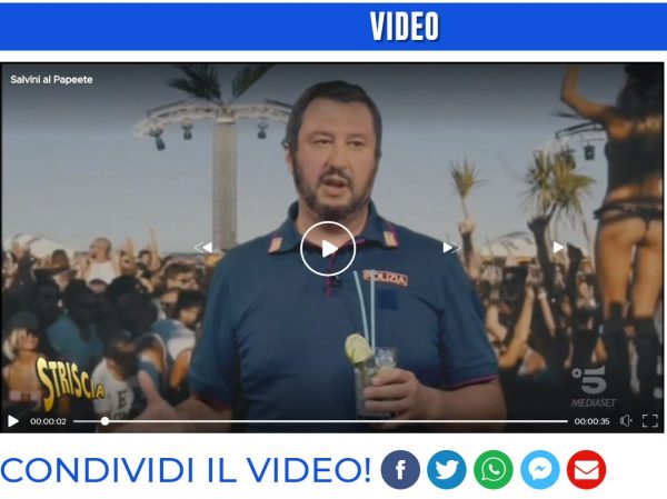E dire che il 22 settembre, un video simile, con protagonista un Matteo Salvini in tenuta da poliziotto al Papeete, con mojito d’ordinanza era stata chiaramente presentata con il titolo: