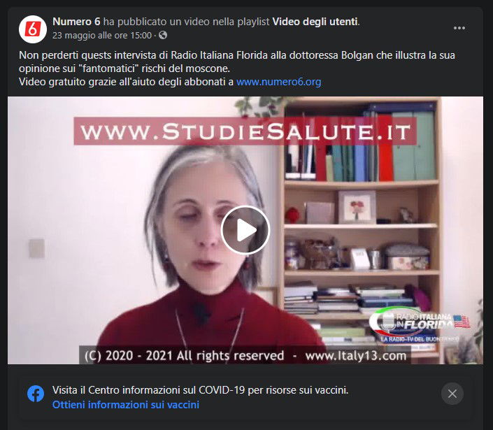 Il boom della fuffa però è legato al 2020 e alla pandemia, quando le interviste invece che essere solo radiofoniche o addirittura riprese da video di altri diventano più “professionali”. Il primo intervistato del nuovo corso è un anziano fisico nucleare che ha idee tutte sue poco accettate dalla comunità scientifica. Da lì si parte con speciali sulla sovranità del popolo, su come l’Italia debba uscire dall’euro e tutta quella narrativa sovranista che ormai conosciamo bene. Il tutto condito da audio con pseudoscienziati, pseudoeconomisti, pseudomedici, la lista è eterna. L’emigrato pubblica una media di otto video al mese, con le visualizzazioni che vanno solitamente da quaranta a un migliaio. Riesce ad avere ospiti soggetti che abbiamo visto anche nei salotti televisivi. Disinforma la popolazione italo-americana esattamente come alcuni dei suoi amici citati all’inizio disinformano la popolazione italiana.
