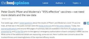 Peter Doshi: Pfizer and Moderna’s “95% effective” vaccines—we need more details and the raw data