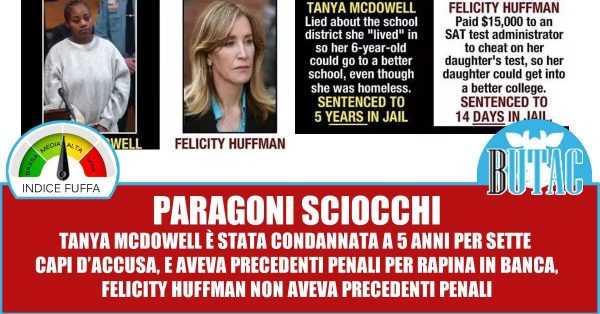 Entrambe le notizie sono vere, ma vanno aggiunti alcuni particolari. Tanya McDowell non è stata condannata a 5 anni per aver tentato di aiutare il figlio a entrare in una scuola migliore. La condanna è basata su una serie di reati e precedenti che non vengono menzionati nell’immagine. Tanya McDowell, difatti, aveva precedenti per rapina in banca e dopo l’episodio della scuola del figlio era stata beccata a vendere droga per strada, e accusata di aver offerto servizi di prostituzione a degli agenti in borghese. In tutto erano sette i capi d’accusa per cui è stata condannata. Tra cui anche l’episodio riguardante il figlio.