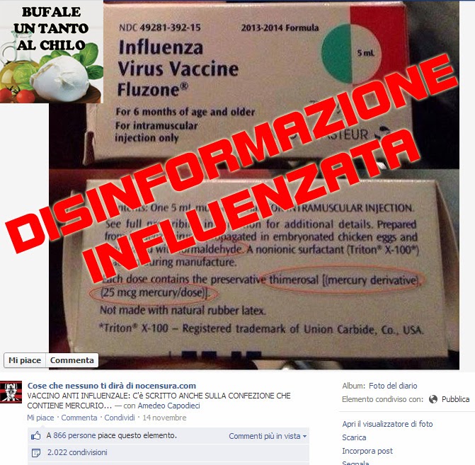 Ormai l’antivaccinismo è davvero diventato una moda, che tristezza. Comunque qui si parla del mercurio e del famigerato componente thimerosal che si trova nel vaccino influenzale Fluozone. Sì, è vero, nel thimerosal si trovano 25 mcg di mercurio, sono anni che si trovano lì e sono anni che gli studi a riguardo dimostrano ripetutamente che non ha nessuna conseguenza dannosa. Ma comunque sia gli antivaccinisti devono attaccarlo, sempre e comunque, perché all’ignoranza non c’è mai fondo.