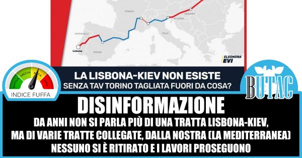 A BUTAC come sempre interessa poco dare giudizi, ma solo analizzare un po’ dei fatti per verificare che siano corretti. Eleonora, deputata presso l’Europarlamento eletta nelle file del Movimento 5 stelle, ci racconta cose corrette, come quando dice che la tratta del Portogallo è stata cancellata. Ma Eleonora non racconta proprio le cose al meglio, parte da progetti che negli anni sono stati più volte rivisti e non includono una definizione Lisbona-Kiev da anni. La tratta che interessa il nostro Paese (e che è la ragione per cui è stata creata l’immagine che circola) è quella definita Mediterranea, e che da Madrid dovrebbe portare a Budapest. E su questa tratta non ci sono Paesi che abbiano cancellato il progetto.