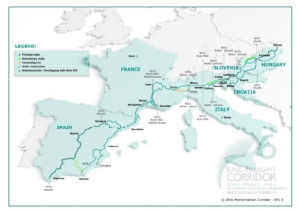 Almeria-Valencia / Algeciras / Madrid-Zaragoza / BarcelonaMarseille-Lyon-Turin-Milano-Verona-Padua / Venice-Trieste / Koper- Ljubljana / Rijeka-ZagrebBudapest-Záhony.