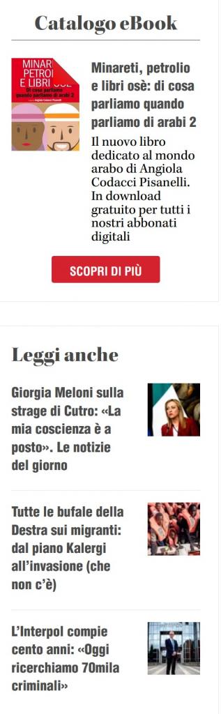 Cliccando sul link dell’articolo si finisce su una pagina che simula in tutto e per tutto una pagina del settimanale L’Espresso:
