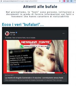 Esclusa Correlazione invece, evitando di linkare Bufale Net (sia mai che ai lettori venisse in mente di controllare con i propri occhi quanto viene riportato), convince i propri lettori che la correlazione sia confermata dal fatto che un parente della povera Angela Carnevale abbia dichiarato che aveva fatto una dose di vaccino. Dando a intendere che questa sia una fonte che dimostra la correlazione. Ma ovviamente non è così, la fonte è valida per sostenere che l’insegnante abbia fatto il vaccino. Ma una fonte che certifichi una correlazione può essere solo un medico che abbia fatto un’autopsia sulla deceduta. Non un parente che dice che ha fatto il vaccino.