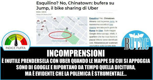 Qualche giorno fa Fratelli d’Italia si è scagliata in maniera decisamente violenta contro Uber Jump, l’applicazione per il noleggio bici di Uber. La cosa che era andata di traverso agli esponenti del partito di destra era il fatto che nella mappa delle biciclette una certa zona di Roma fosse identificata col nome Chinatown. Sia chiaro, tutto corretto, è vero che sulle mappe di Uber Jump si trova il nome Chinatown, ma Uber non ne ha colpa alcuna, come non ne hanno tutti i servizi che sfruttano le mappe di Google, perché è su quelle che compare il nome Chinatown a definire una zona nell’area tra Esquilino e Monti.