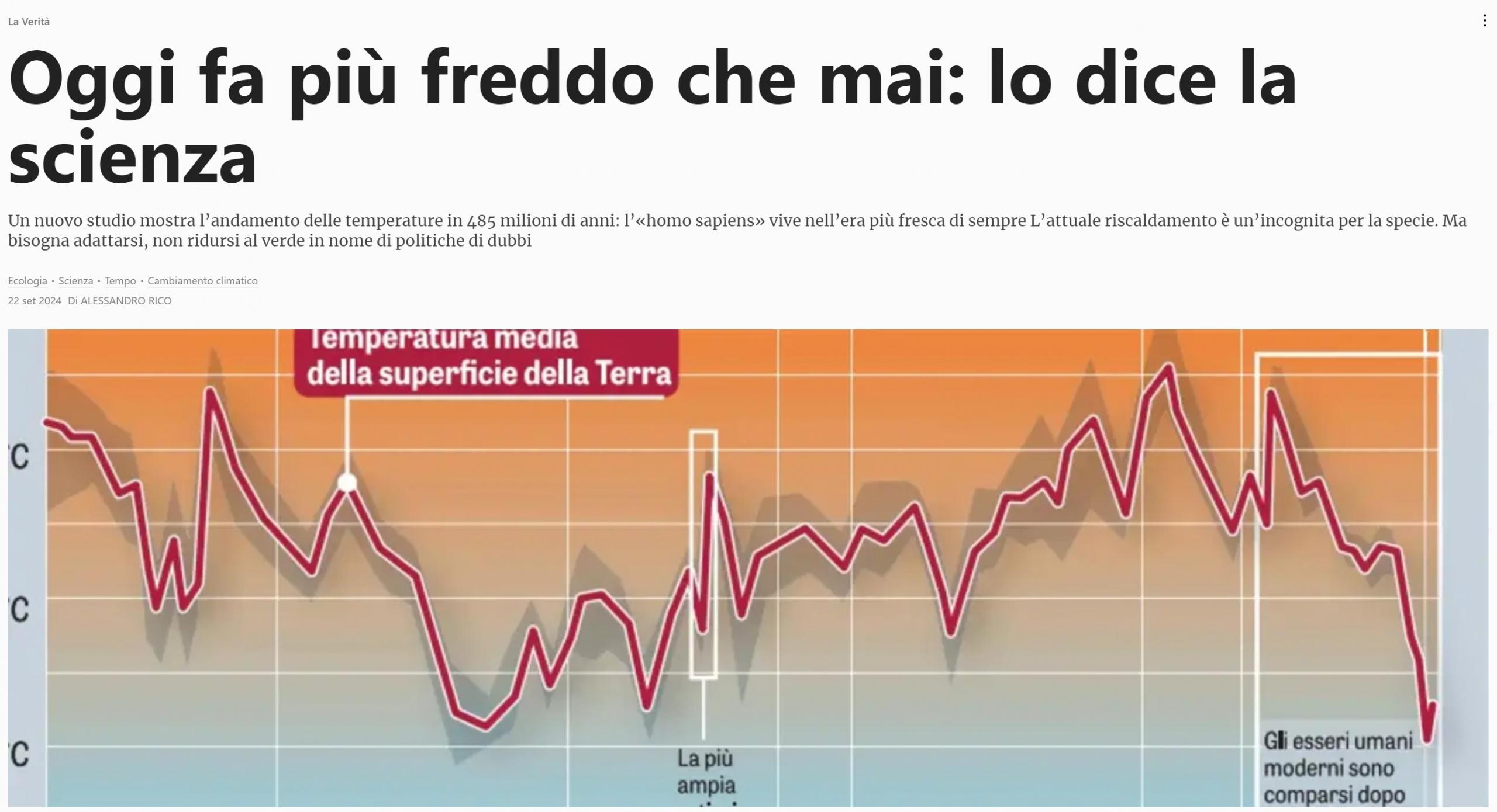 Secondo quanto trovato la Terra in passato ha raggiunto temperature medie di 36°C, molto superiori ai 14,98°C registrati come media globale nel 2023, ed è da questa temperatura che viene il titolone de La Verità.