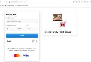 Questa volta abbiamo vinto un set di prodotti Nutella, più un barattolo da tre chili... bastano solo svariatissimi click e inserire i dati della nostra carta di credito. Cosa potrà mai succedere?