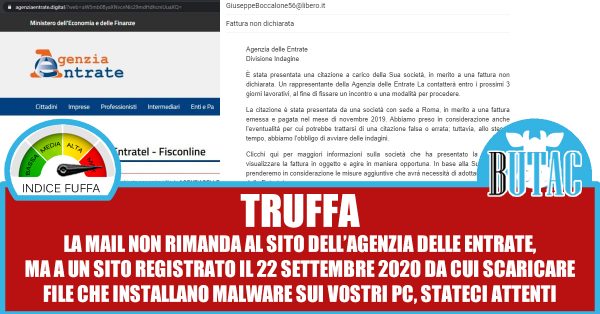 Mi avete segnalato l’ennesima truffa che circola via mail. Stavolta il mittente è di quelli che agli imprenditori mettono sempre un po’ di ansia. Siamo di fronte a una mail che sembra arrivare niente popò di meno che dall’Agenzia delle Entrate.