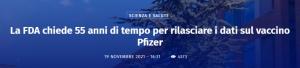 La FDA chiede 55 anni di tempo per rilasciare i dati sul vaccino Pfizer