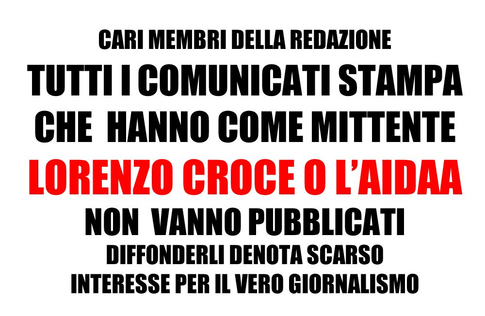 Per chi sia arrivato qui senza avere la più pallida idea di chi sia Lorenzo Croce facciamo un brevissimo riassunto. Lorenzo Croce è, da sempre, il presidente di questa associazione che esiste solo ed esclusivamente su comunicati stampa e sulle pagine social, non c’è uno statuto associativo, non ci sono documenti che ne attestino l’esistenza, non ci sono le attività che ci si aspettano da una reale associazione animalista. Si tratta di una creatura di Croce, nata per raccogliere donazioni in difesa degli animali e dell’ambiente. Il modus operandi è sempre lo stesso da tanti anni, cercare notizie che abbiano come protagonisti gli animali, emettere comunicati stampa in cui si prendono le difese degli stessi (a volte oltrepassando il confine del ridicolo, come quella volta della gallina Rosita – in questo articolo oltre alla vicenda che vede Croce prendere le difese di un animale meccanico maltrattato potete anche leggere di quella volta che è stato radiato dall’Albo dei Giornalisti per aver inventato di sana pianta un’intervista a Craxi) e farsi pubblicare su più giornali possibili, in maniera da far girare nome e acronimo (stranamente simile a quello di un’associazione molto attiva e conosciuta, la AIDAeA). Nel giro di poco tutte le testate italiane avevano preso l’abitudine di pubblicare i suoi comunicati stampa, dove a volte offriva taglie da migliaia di euro contro chi maltrattava gli animali, altre volte chiedeva donazioni, spesso sparava dati sensazionalistici a caso (e per aver chiesto conto di alcuni questi dati, la nostra Noemi si è vista arrivare a casa una querela, poi ovviamente archiviata). Non ci risulta sia mai stata pagata una delle tante taglie offerte da Croce, che in compenso di donazioni negli anni ne ha raccolte tante. Senza uno statuto associativo non esiste un bilancio trasparente che permetta di quantificare quanti di quei soldi siano realmente andati in difesa degli animali, e quanti invece siano serviti ad aiutare Croce, che non risulta impegnato in altre attività lavorative.