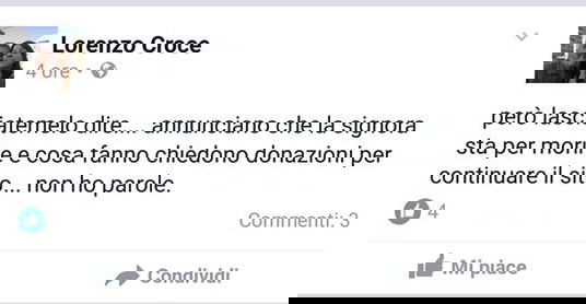 Valeria è venuta a mancare nel 2016, con Croce che commentava pubblicamente sui social così l’agonia della povera Valeria nei suoi ultimi giorni di vita: