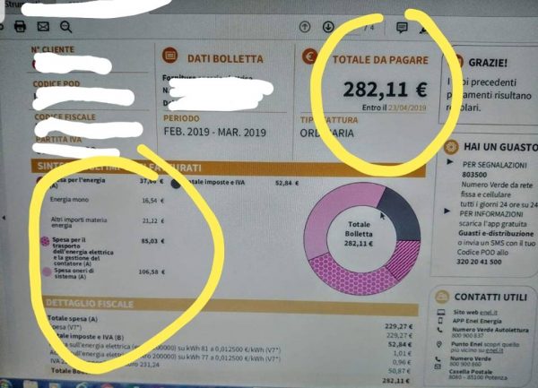 Come si raggiunge la cifra di 282,11 euro di bolletta, con 37,66 euro di spesa per energia????? Io continuo a pubblicare le bollette fino a quando non ci diranno che questa ingiustizia verrà superata!