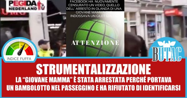 Mi avete segnalato nei giorni scorsi un post che stava girando sui social, post ora rimosso, che mostrava un breve video in cui si vedeva una donna con passeggino arrestata dalla polizia. La tesi riportata nel post era che fosse stata arrestata in quanto indossava un gilet giallo. Ovviamente il post aveva un tono indignato, dando a intendere a chi lo vedesse girare che chiunque indossi un gilet giallo sia a rischio arresto.