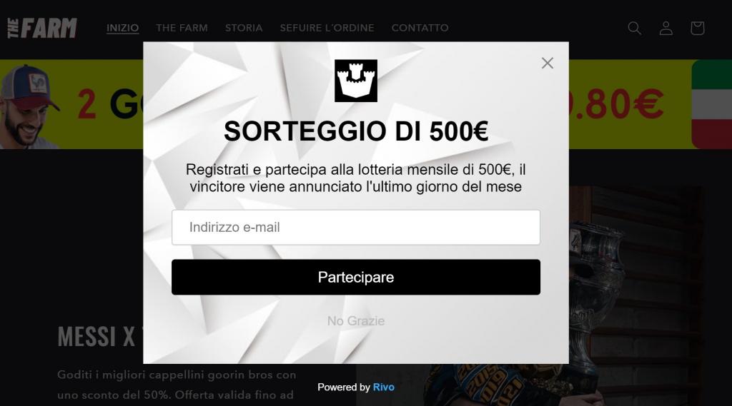 Il sito in questione, appena entriamo, ci invita a lasciare una mail per partecipare a una fantomatica lotteria, peccato che manchino le necessarie autorizzazioni ministeriali: