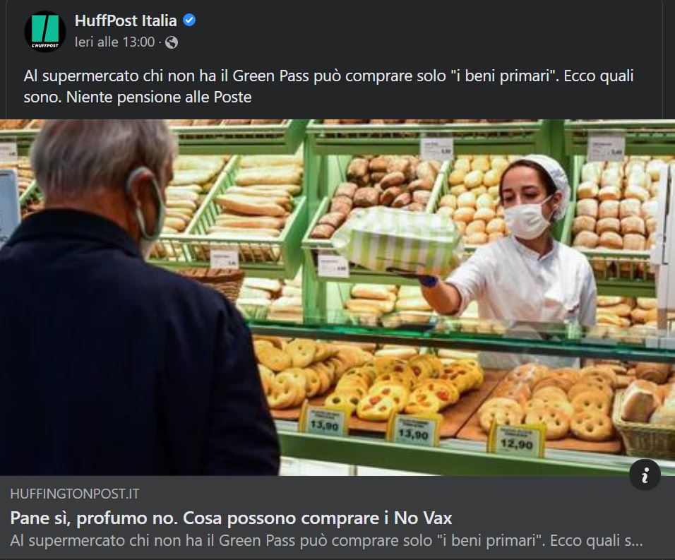 Il post del 21 gennaio 2022 che accompagna l’articolo di Huffington Post riporta: