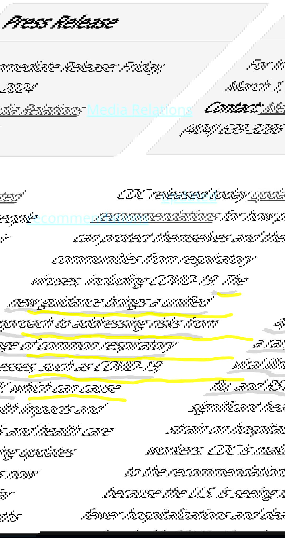 La guida aggiornata del CDC riflette come sono cambiate le circostanze, in particolare relative a COVID-19. Sebbene rimanga una minaccia, oggi è molto meno probabile che causi malattie gravi grazie all’immunità diffusa e agli strumenti migliorati per prevenire e curare la malattia.