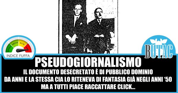 Tutte le testate italiane stanno facendo girare il memo desecretato della CIA che sembra sostenere la presenza di Adolf Hitler in Sudamerica dopo la fine della seconda guerra mondiale. Tutti lo fanno circolare in questi giorni, dando a intendere che si tratti di un memo fresco fresco di pubblicazione.