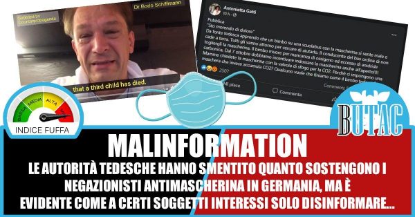 Questa volta facciamo davvero in fretta. Ci sono alcuni soggetti, di quelli che vorrei vedere puniti in maniera esemplare, che stanno facendo circolare in Italia la notizia che in Germania ben tre bambini siano morti a causa della mascherina.