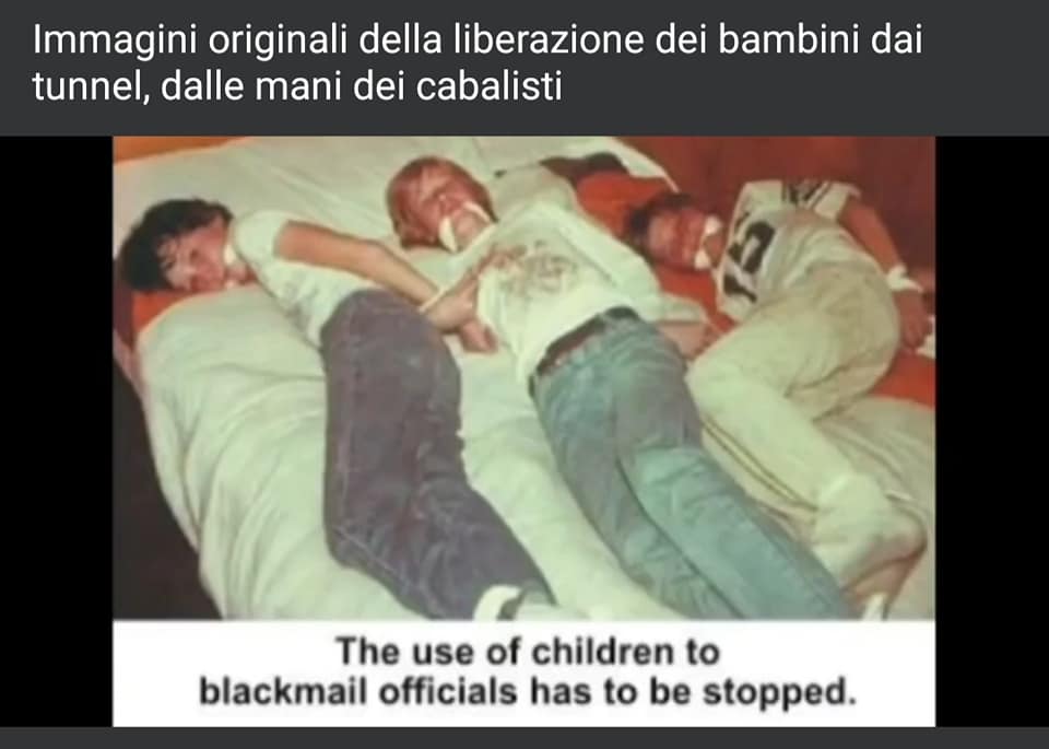 Questa storia dei bambini chiusi nei tunnel sta iniziando ad assumere proporzioni preoccupanti, che ci siano anche in Italia soggetti che ci credono a me onestamente mette ansia. Si sta perdendo la sanità mentale, sarà colpa della pandemia, ma qui siamo davvero a livelli preoccupanti di complottismo.
