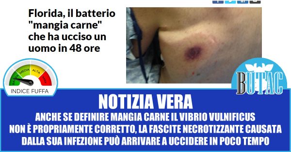 La storia è quella di Dave Bennet, di 66 anni, che dopo un bagno e un giretto in jet sky nel Golfo del Messico si è ritrovato in ospedale e in 48 ore è morto. La storia è vera, il povero Dave Bennet ha subito una fascite necrotizzante che può portare alla morte in sole 48 ore. Una precisazione va però fatta, i batteri che hanno causato la fascite non sono “mangia-carne”, come viene spiegato anche sulla stessa Wikipedia: