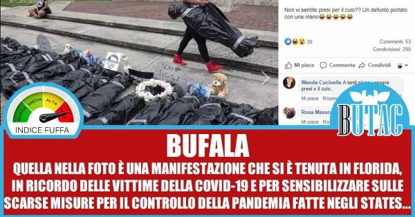 Oggi gira su tante bacheche, e dal 3 luglio ce lo state segnalando a ripetizione. Nell’immagine si vede una fila di sacchi neri che sembrano contenere cadaveri e qualcuno che ne sta trasportando uno con una sola mano. I commenti ve li lascio immaginare, tutti a sostenere che questa è la prova provata che la pandemia è una farsa. Ma in realtà, come appunto aveva già spiegato FACTA: