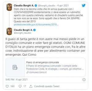 La realtà di cui parlo è che qui Borghi si sta lamentando di propri follower che gli chiedono lumi su questi fantomatici campi di container, e lui non ne può più. Purtroppo per lui quei follower sono esattamente i soggetti che la Lega ha tirato su con la sua Bestia, gente che non ha gli strumenti per capire che i Porro, i Fusaro (e anche i Tiboni che proprio ieri son finiti sulle nostre pagine) stanno solo monetizzando sulle sue paure. Vi ho dovuto mettere uno screenshot del caro Borghi perché lo stesso mi ha bloccato dal suo profilo Twitter. Tutto lecito, sia chiaro, siamo in democrazia e ha tutto il diritto di cercare di rendermi più difficile il confutare quanto pubblica. È curiosa la scelta di un parlamentare di bloccare un fact-checker, ma ognuno fa poi come gli pare.