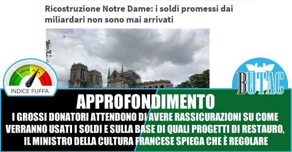 Su alcuni giornali italiani e stranieri nei giorni scorsi sono apparsi articoli che, partendo dalla fonte Bloomberg, raccontano dei problemi coi finanziamenti per la ricostruzione di Notre Dame dopo l’incendio che ne ha distrutto il tetto.