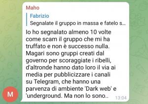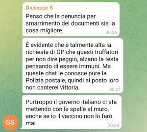 Gli utenti arrabbiati per la mancata erogazione della certificazione falsa a quel punto si organizzano in maniera indipendente, aprendo gruppi per scambiarsi pareri ed esperienze e scoprendo che a molti di quelli che hanno inviato denaro e documenti (generalmente “per un amico”, eh…) non è ancora arrivato niente. Giunge quindi la risposta, offesissima per la scarsa fiducia dimostrata dagli acquirenti, di uno dei più grandi canali Telegram italiani che promette Green pass. Venerdì, infatti, nei canali gestiti da tale “maurogp” sono comparsi questi messaggi, che vi incolliamo integralmente: