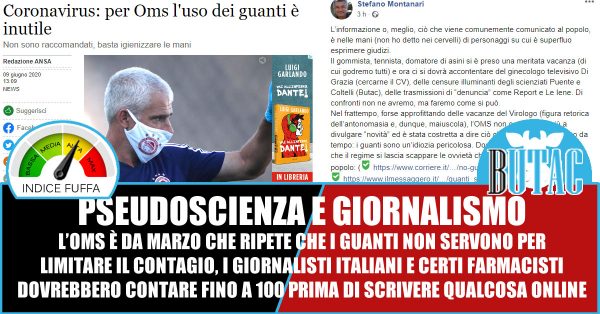 Sia chiaro, come Montanari anche i giornali italiani hanno titolato nella maniera scorretta in merito ai guanti. Anzi, ora che ci faccio caso il post di Montanari è successivo agli articoli sui giornali di oggi. Vuoi vedere che il nostro farmacista non ha fatto alcuna verifica e si è fidato di quel mainstream che tanto si vanta di combattere?