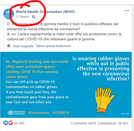 Purtroppo per il nostro farmacista preferito le cose non stanno come lui vuole passarle, l’OMS come quasi tutti gli scienziati da sempre sostengono che i guanti non servano contro la diffusione del virus. E ci voleva pochissimo tempo per verificarlo.