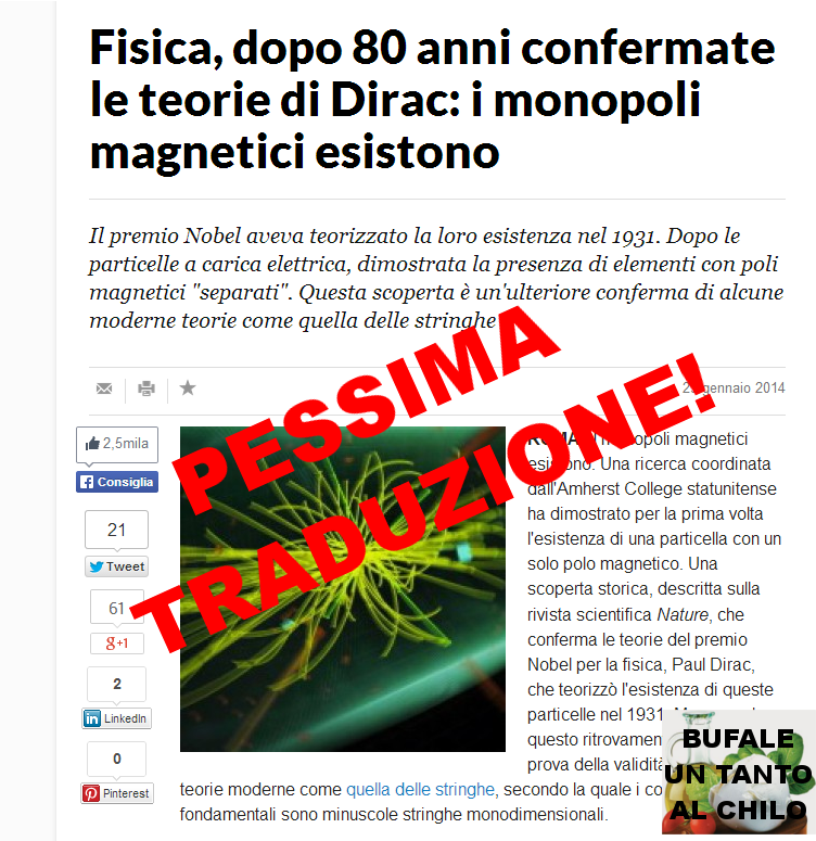 “C’è un’analogia matematica, una chiara e bellissima. Ma non sono monopoli magnetici.”