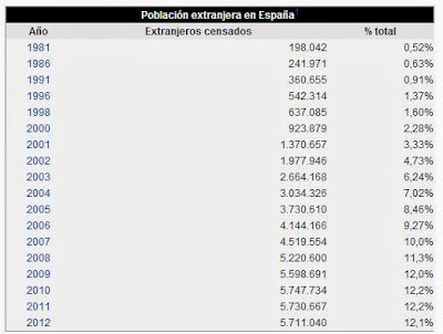 Non posso confermarlo, visto che l’Istituto di statistica spagnolo si ferma al 2011, ma sulla pagina wiki spagnola sembra che vi sia stata una lieve diminuzione tra il 2011 e il 2012, circa 30.000 in meno, ma anche noi nel 2011 abbiamo avuto un calo di circa 200mila…