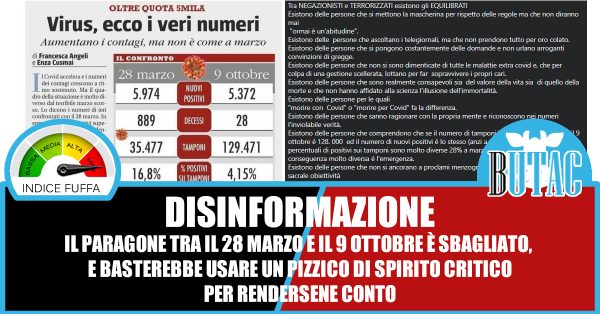 In vari formati da alcuni giorni stanno circolando paragoni tra i numeri del contagio di marzo e quelli attuali. Credo sia il caso fare un minimo di chiarezza. I numeri che avete visto riportare sono corretti, ma il problema è, come dico nel titolo di quest’articolo, che si tratta di un paragone insensato.