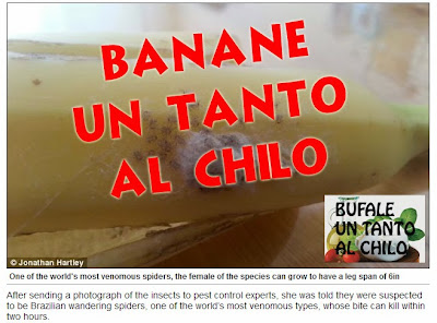 Veniamo ai fatti la notizia parte da un articolo del Sun (si proprio loro, nostri fornitori preferiti di boiate a basso costo, quelli che fan vedere le tette in terza pagina), e ci narra dello spavento che Consi Taylor e la sua famiglia hanno avuto quando han trovato tanti minuscoli ragnetti provenire (secondo loro) da delle banane acquistate in un supermarket della catena Sainsbury’s.