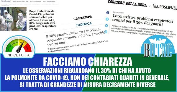 Su molte testate giornalistiche è stato riportato uno studio secondo il quale il 30% dei malati di COVID-19 avrà delle conseguenze sui propri polmoni. Come riportava il Corriere: