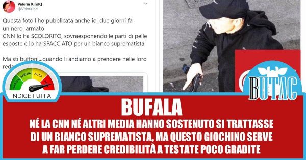 Questa foto l’ho pubblicata anche io, due giorni fa un nero, armato CNN lo ha SCOLORITO, sovraesponendo le parti di pelle esposte e lo ha SPACCIATO per un bianco suprematista Ma sti buffoni…quando li andiamo a prendere nelle loro redazioni?