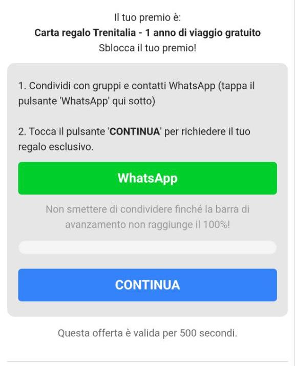 Nella pagina successiva ti verrà chiesto di condividere questa promozione con alcuni contatti e Gruppi WhatsApp. In modo rapido facile e sicuro…