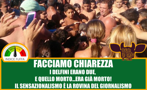 fa riferimento proprio a questo: chi può dire che il delfino sia morto disidratato se la carcassa non l’ha esaminata nessuno? Dalle foto è impossibile capire se il delfino fosse vivo o morto ovviamente e la notizia bisognava darla facendo presente tutte le contraddizioni rilevate. Il Telegraph utilizza un sistema molto inglese per riportare la notizia, cioè parte con un titolo e versione dei fatti “standard” e alla fine aggiunge dei dati o dichiarazioni che però vanno contro alla versione sostenuta. I giornali italiani, che copiano sempre dai tabloid inglesi, di solito si fermano alla prima parte, concedendosi anche a volte la libertà di tradurre malissimo. L’unica cosa che si sa è che un delfino sia morto. Oltre al fotografo già menzionato, altri siti riportano la dichiarazione di un’altra testimone che sostiene che al ritrovamento il delfino fosse gravemente ferito e che sia morto