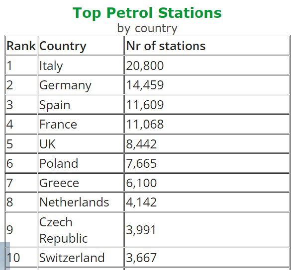 Mentre come numero di distributori di benzina siamo davanti a tutti, con uno stacco dal secondo posto decisamente importante: