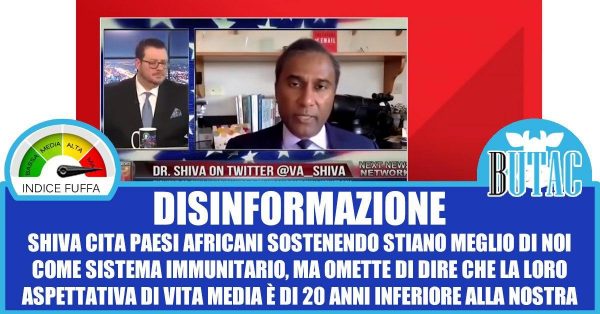 Poi si arriva alle vitamine. Shiva, che non è un medico, sostiene che siamo messi così perché non assumiamo abbastanza vitamine. Fa l’esempio dell’Africa, sostenendo che in Gibuti e nel Chad ci sia stato un solo caso di coronavirus. Secondo lui perché in quei Paesi fanno una vita diversa dalla nostra, stanno più al sole, all’aperto, e assumono più vitamine. Ma in Gibuti la speranza di vita è di 68,5 anni, nel Chad 53,7. Capire che non stanno meglio di noi sarebbe importante. Shiva parla di un solo caso, ci racconta che non hanno nessun morto. Ma dall’intervista (che risale al 25 marzo) i casi sono aumentati, il Chad ha chiuso le frontiere e in Gibuti ci sono stati i primi due morti da CoVid-19. Saranno stati gli unici due che non assumono vitamina C e D… Ovviamente sono tutte cose che Shiva non poteva sapere il 25 marzo, ma Radio Radio Tv che doppia l’intervista e la mette in rete il 15 aprile sì.